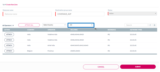 Select Network Type drop-down list. For example, select 2G to view the operators available for 2G Network.