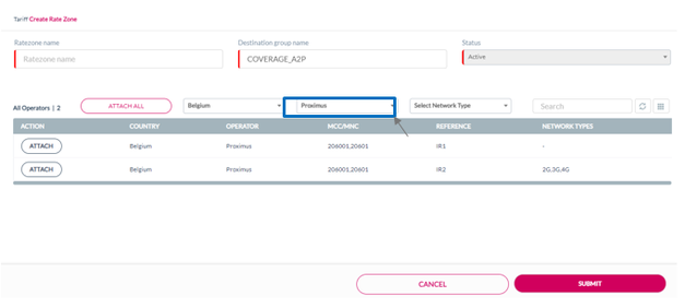 Select Operator drop-down list. For example, select Belgium Proximus to view that particular operator.