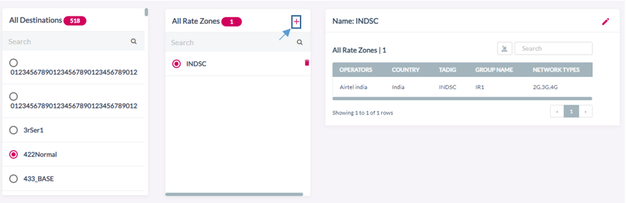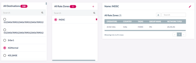 After clicking the button, the following screen is displayed. Rate zone attached to each Destination group is displayed.