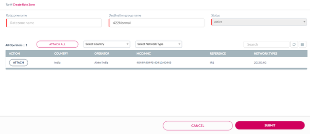 Click Attach All to attach all the listed operators to the rate zone. Refer to the following screen.
