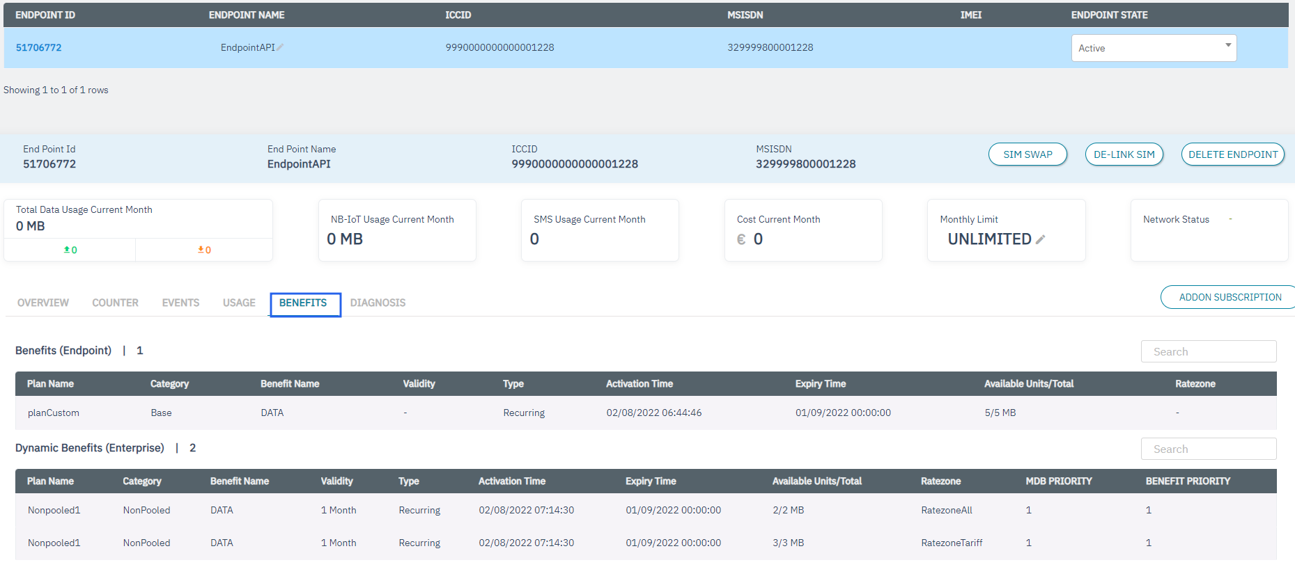 Benefit Name | Indicates the corresponding benefit name for the Addon plan subscribed. Depending on the Addon plan subscribed, Benefit varies |