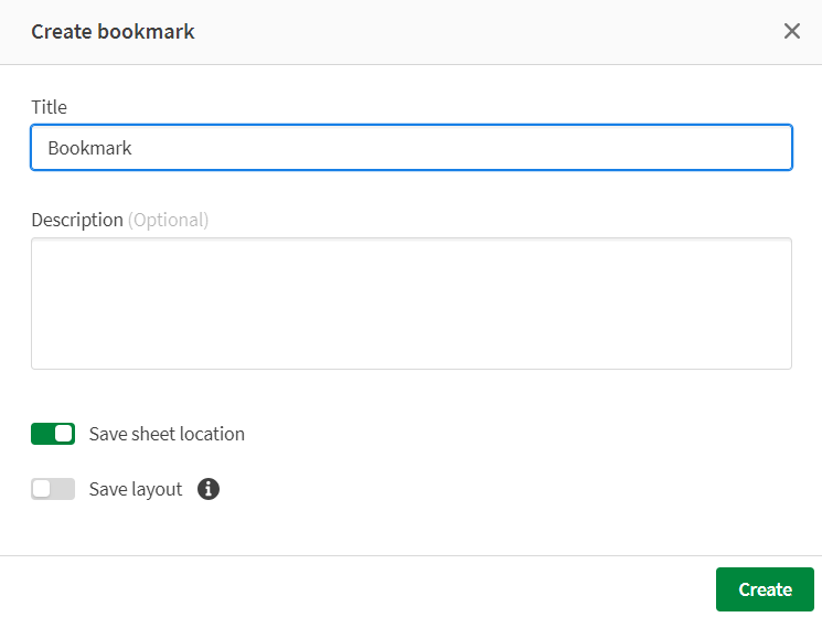 Give the new bookmark a name and description. Save the sheet location and Save the layout when you want to keep for example the sorting that you did.