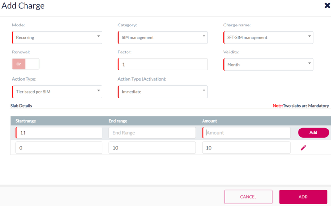 Note: Minimum two slabs are mandatory to create Tier based per SIM charging.