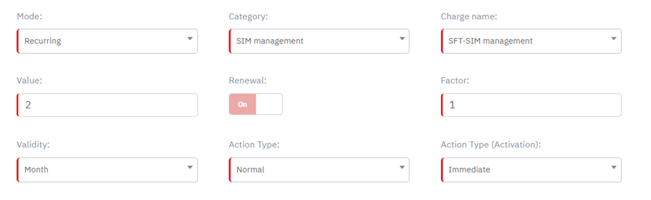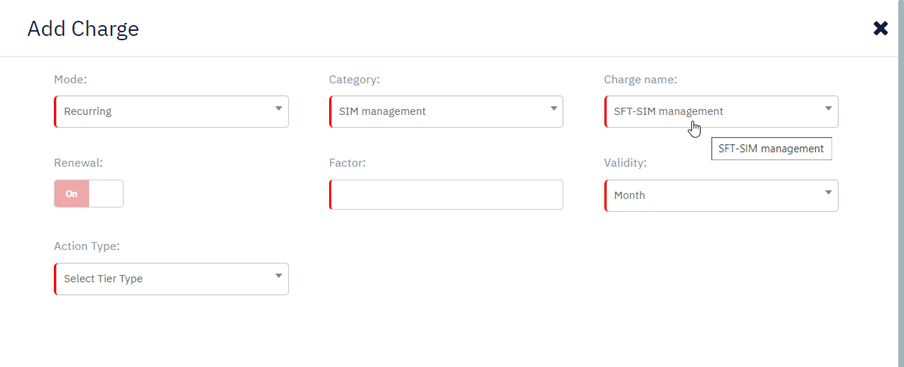 Charge name “SFT – SIM Management” is shown when SIM Management is selected as Category.
