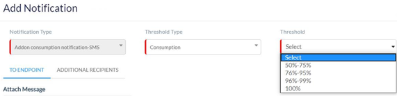 Threshold type | This field is displayed when you select the Notification type as "Addon consumption notification-DATA" or”Addon consumption notification-NB-IOT” or "Addon consumption notification-SMS". |
