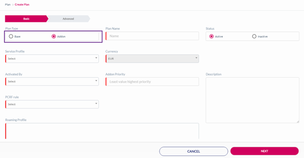 Addon Priority | This field is displayed when you select "Addon" as plan type. |