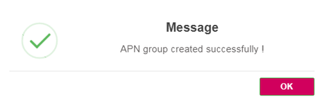 5. Click Submit. A confirmation message is displayed, indicating that the APN Group is created successfully.