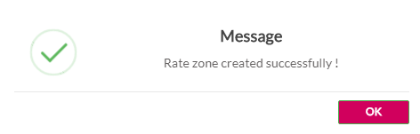 11. Click Submit. A confirmation message is displayed, indicating that the Ratezone is created successfully.
