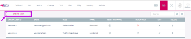 2. On the user management screen, click Create User to create a new user. Refer to the following screen.
