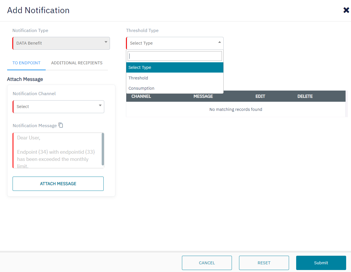 DATA Benefit - Based on the notification configuration, a notification is sent to the customer or additional recipients about the DATA benefit available in the base plan.