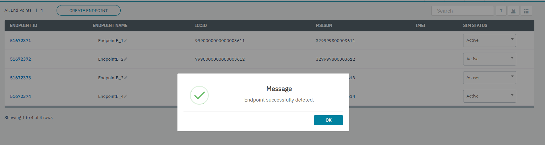 7. A confirmation message is displayed indicating the Endpoint Deleted is successful.