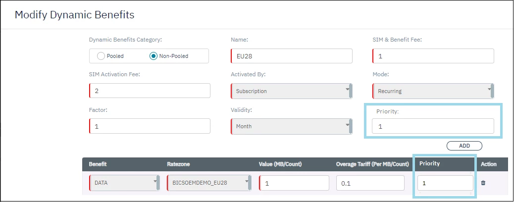 Only between multiple non-pooled ones, there is a need to define a priority. Therefore we introduce a priority per MDB that BICS or a Reseller can configure during non-pooled MDB creation. To allow a Reseller to give his own created MDB a higher priority than the ones he has received from his parent, we will work with the convention to use e.g. priorities starting from 100 within a base plan intended for a Reseller, and if the Reseller wants to do the same for his child Reseller, he can use e.g. priorities starting from 50 within that base plan.