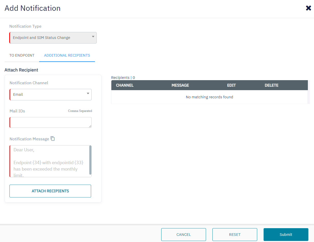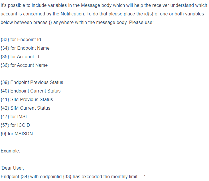 Action | Endpoint current Status | Endpoint new Status | SIM current Status | SIM new Status | Notification title | Notification body |