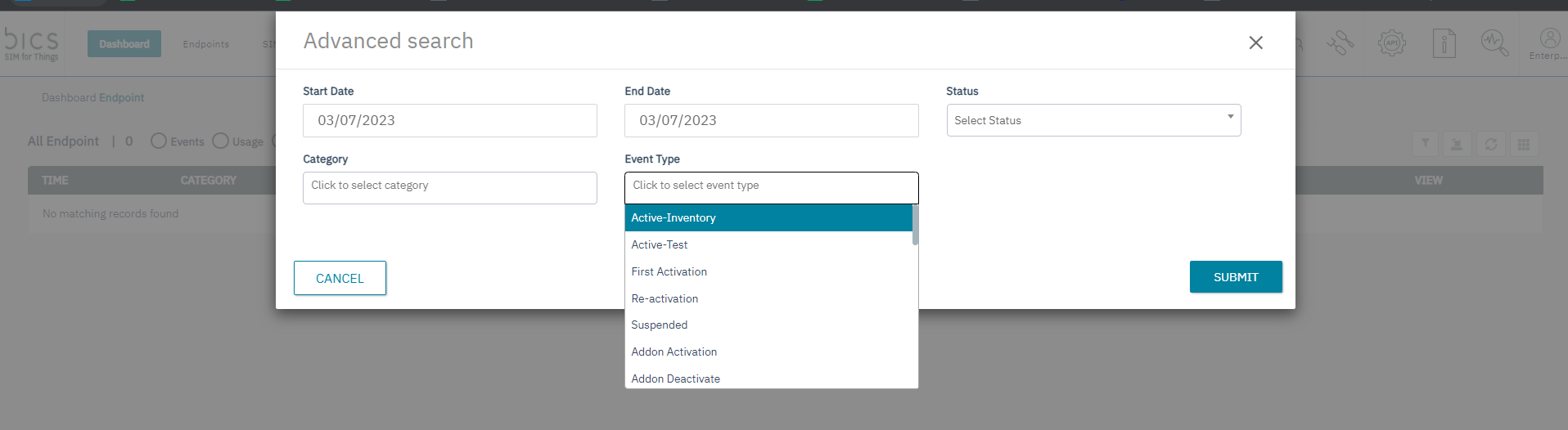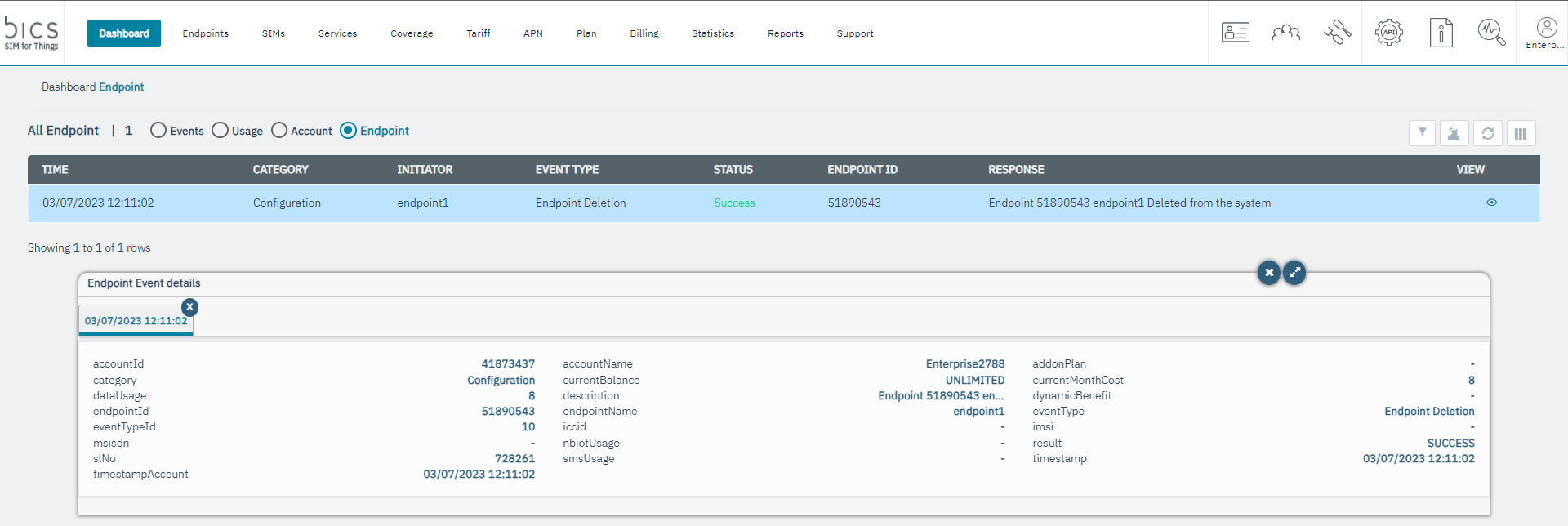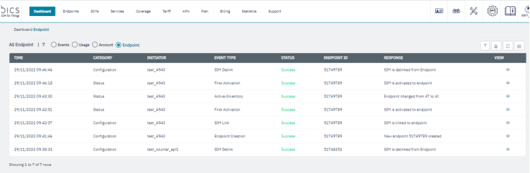 Note: We are writing Endpoint events for Endpoint provisioning, Plan change, MDB activation, MDB deactivation, Add subscription, Addon deactivation, service profile modification, coverage modify, Counter update, Balance update, Bulk provision, endpoint modify and imei lock and unlock.