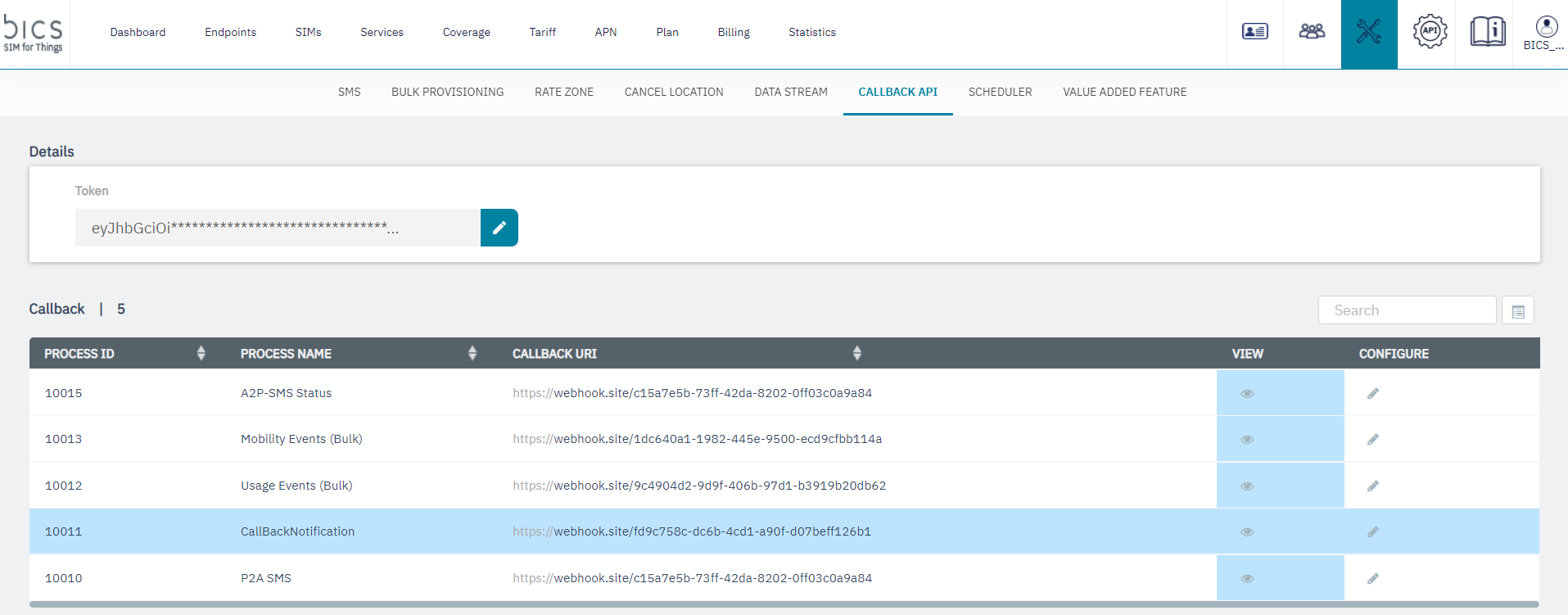 Tokenwith a JWT format token which will be included in the header of the Notification API request send towards your data center, this provides a secure way to authenticate that the API request is initiated by the SIM for Things platform.Configure