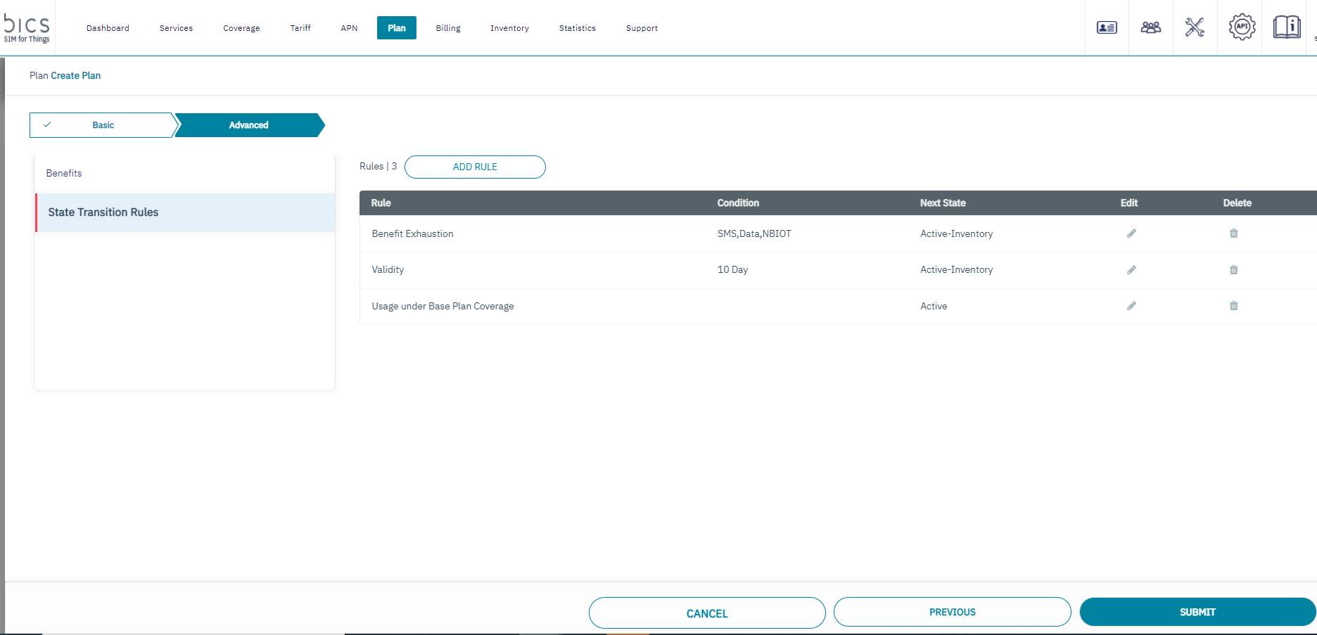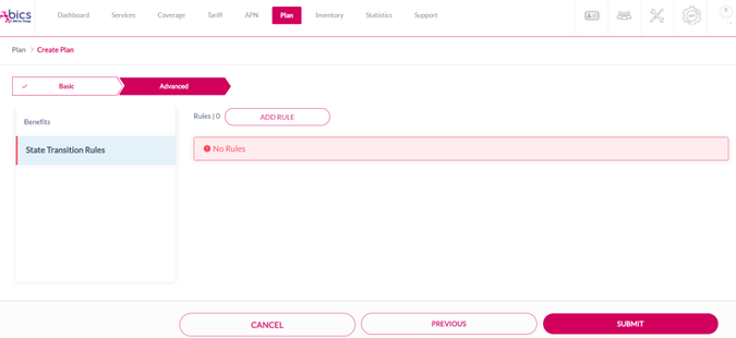 Select usage under base plan coverage as state transition rule and click on add.
