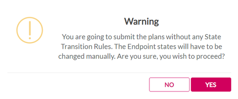 6. In the OEM Test Plan without adding state transition rule if submit button is clicked, we get a warning message. Refer to the following screen.