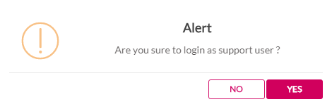 4. If you receive the "Alert Are you sure to login as support user?" message, click Yes to confirm the action or click No to discard the action.
