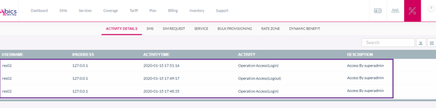 All changes performed using Operational access are recorded under the Activity Details screen.