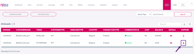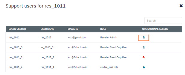 The Support function allows the Reseller to view child accounts without password for Operational or Provisioning activities. To access the enterprise account, Operational access has to be granted to the Reseller account.