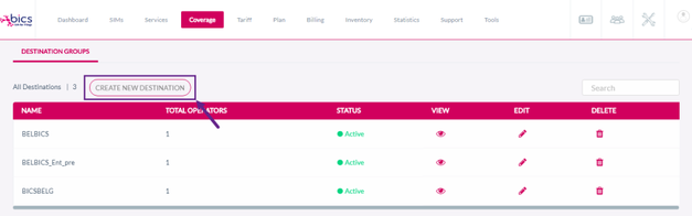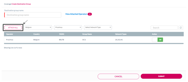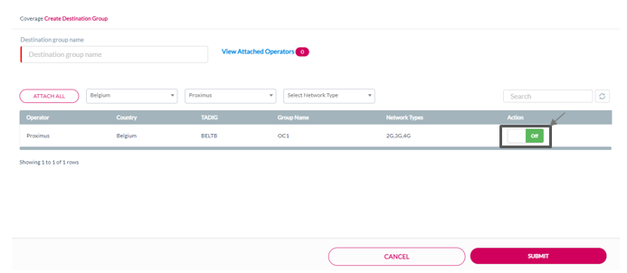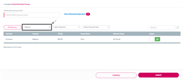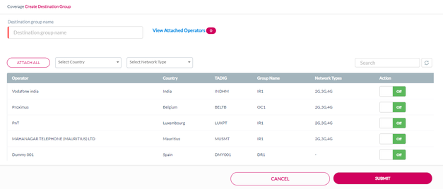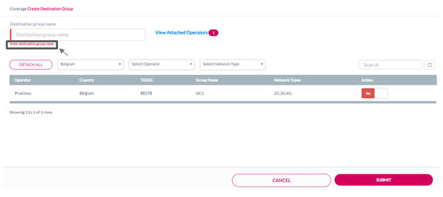 Note: The operators available under reseller's current plan are displayed in the Create Destination Group screen.