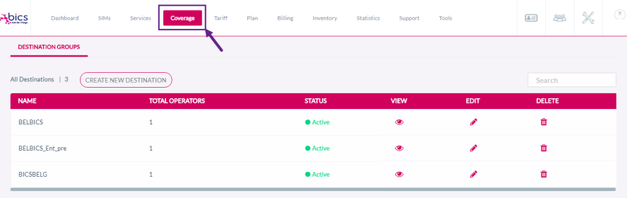 On the top menu, click Coverage to view the Destination group details. Refer to the following screen.