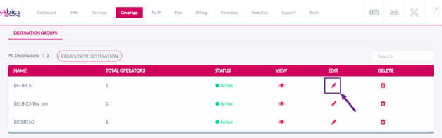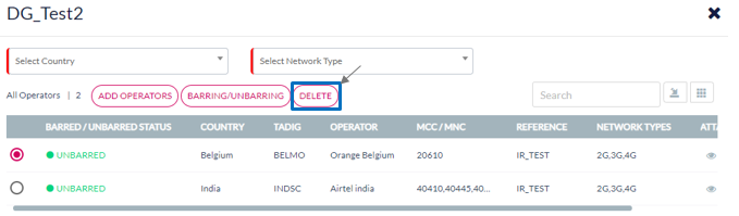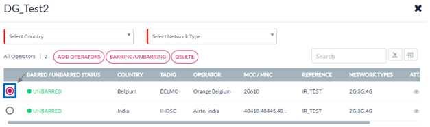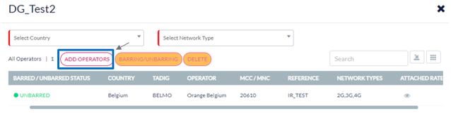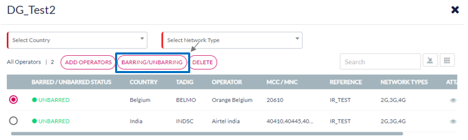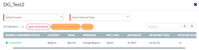 Note: Barring/Unbarring and Delete featured are not available if the Destination Group contains only one Operator.
