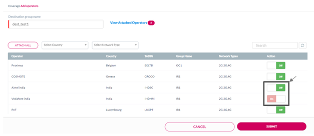 Push the action button against the operator to Attach or Detach the operator to the Destination group. Refer to the following screen.