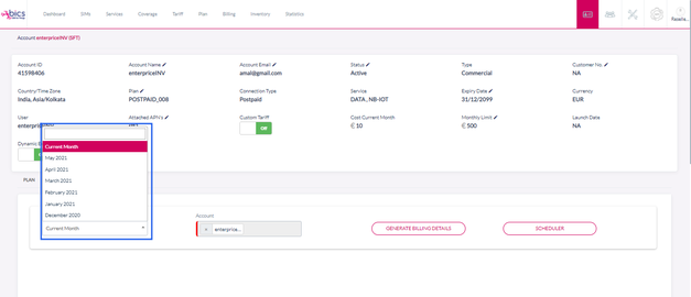 The Reseller can view the Billing details of enterprise for the current month and last 6 months using the Billing tab. Refer to the following screen.
