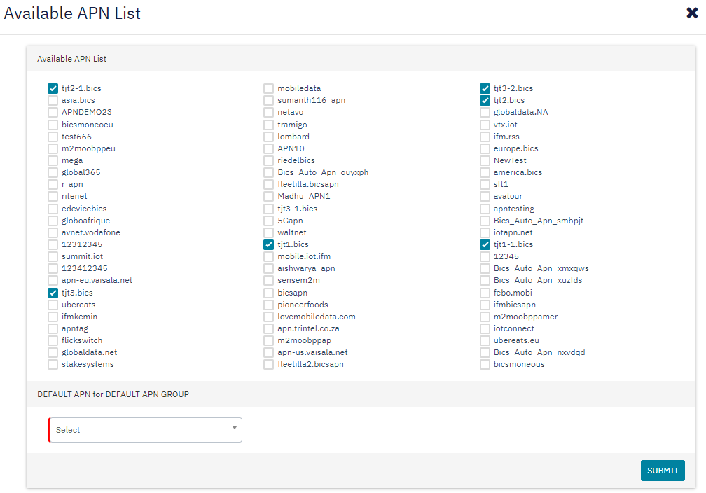 Once the baseplan is assigned, the DEFAULT APN for DEFAULT APN GROUP field will be non-editable, only the APNs list can be modified.