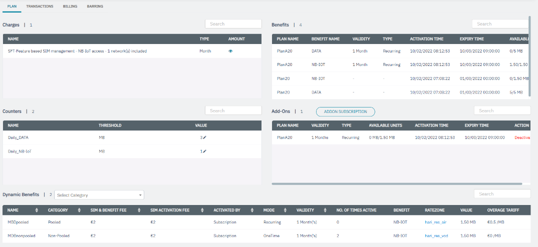SIM Management | Type | Type of charging as configured in the “Action Type” (and slab details) in the SIM management fee | |