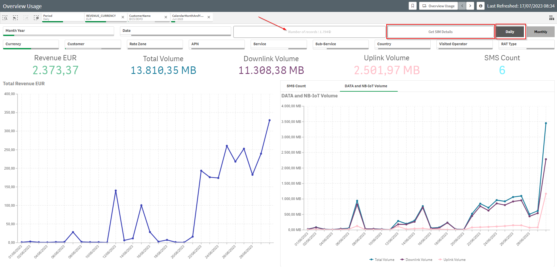 Please select one month ‘Month Year’ and then your will be able to get he ‘Get SIM Details’. It will open a new window, and statistics will be loaded, it can takes several minutes to load all the data.