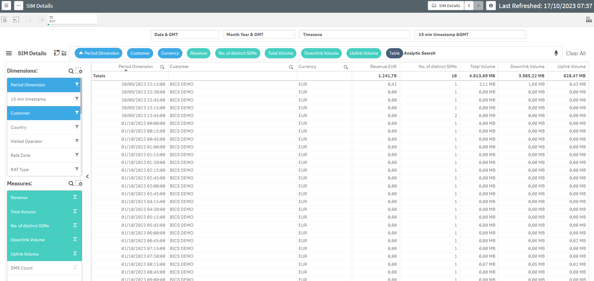 The report shows all the usage per 15min during the selected month, if you disable the ‘Period Dimension’, data will be consolidated over the month or the selected date.