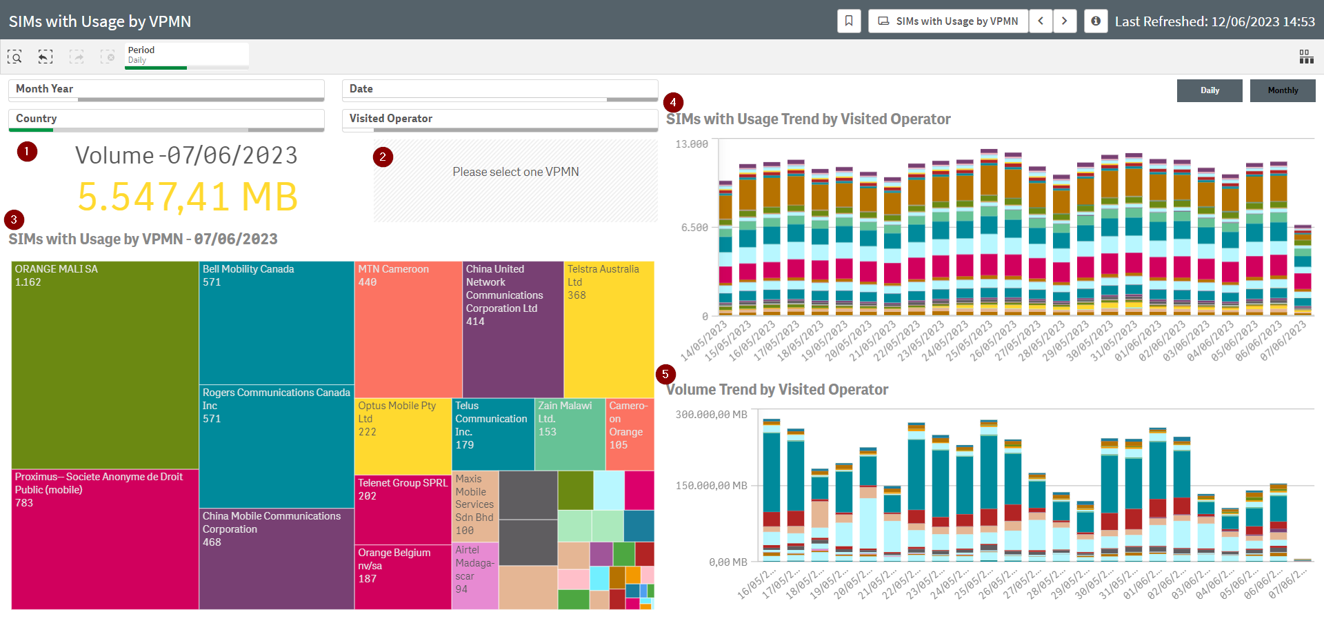 3 - Mekko chart with Number of SIMs with Usage on the last available/selected periods by VPMN