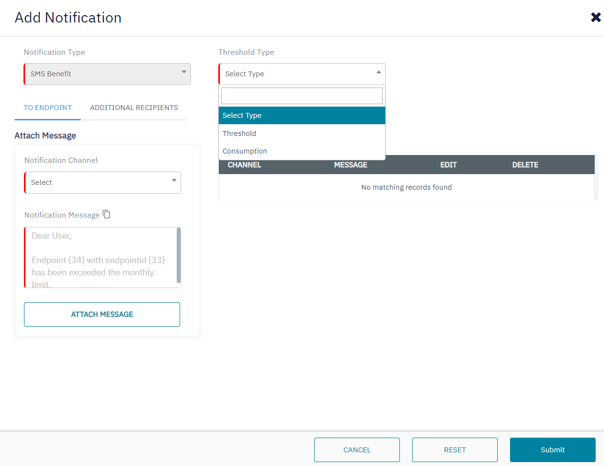 SMS benefit notification - Based on the notification configuration, a notification is sent to the customer or additional recipients about the SMS benefit available in the base plan.