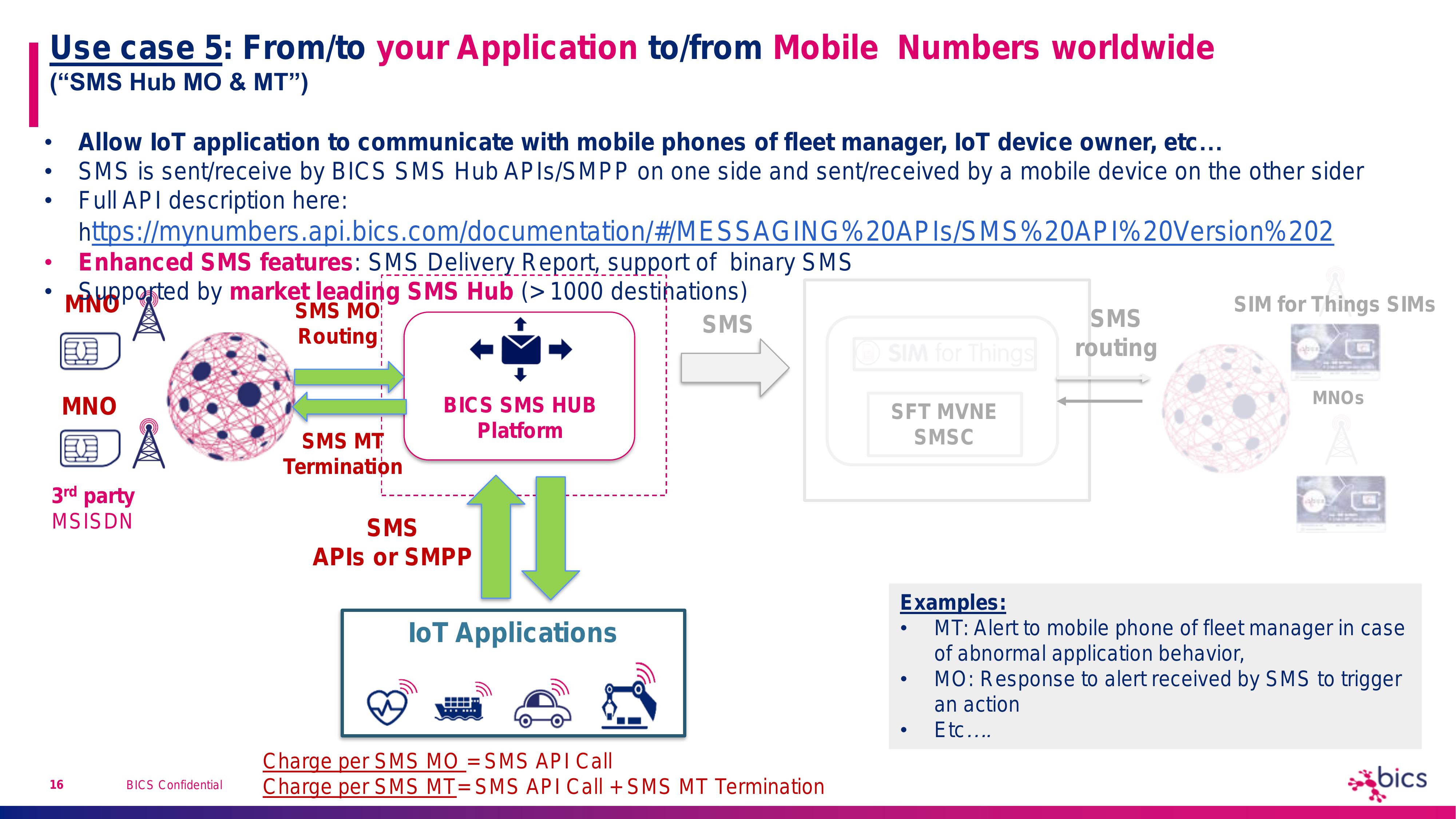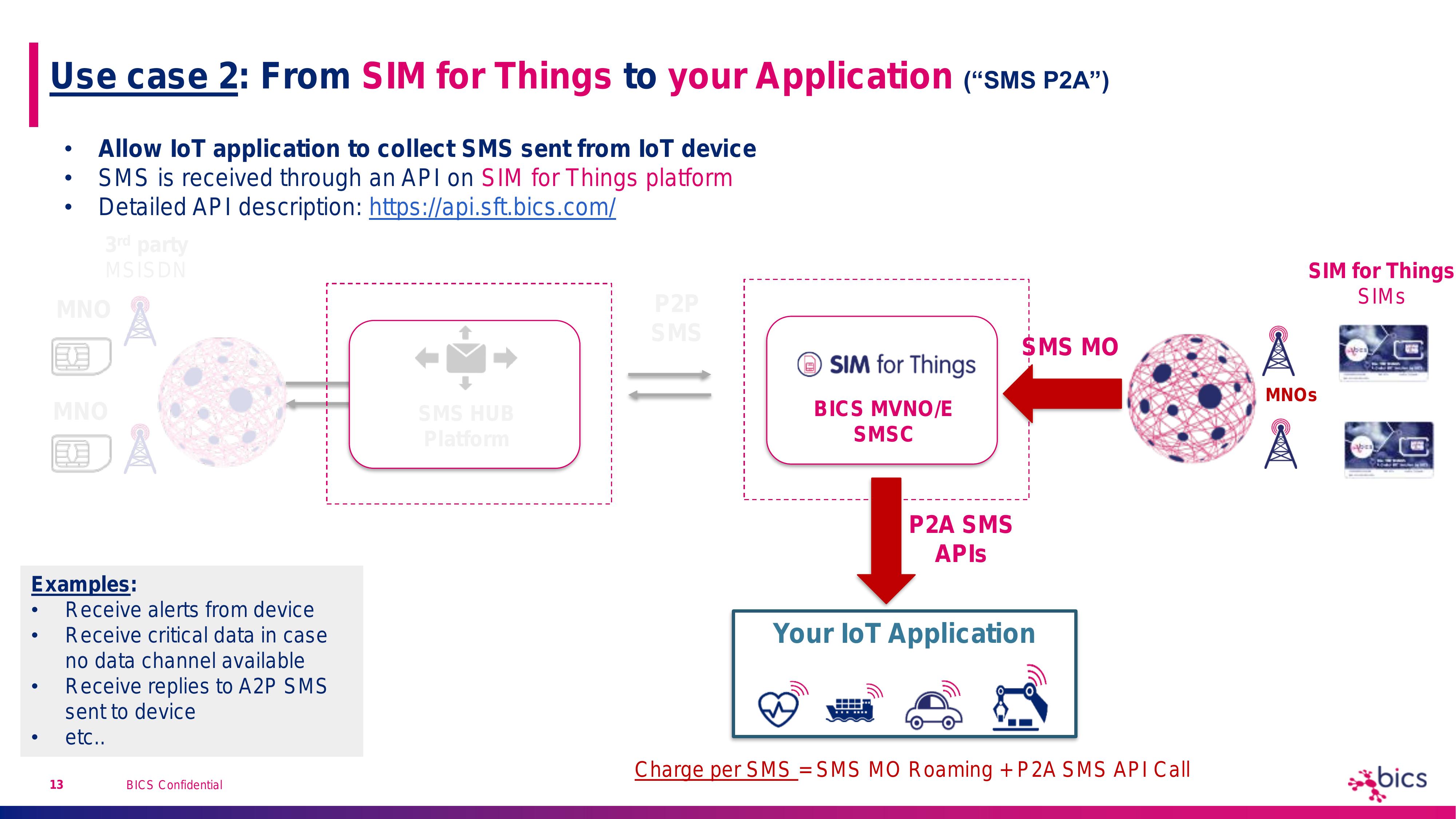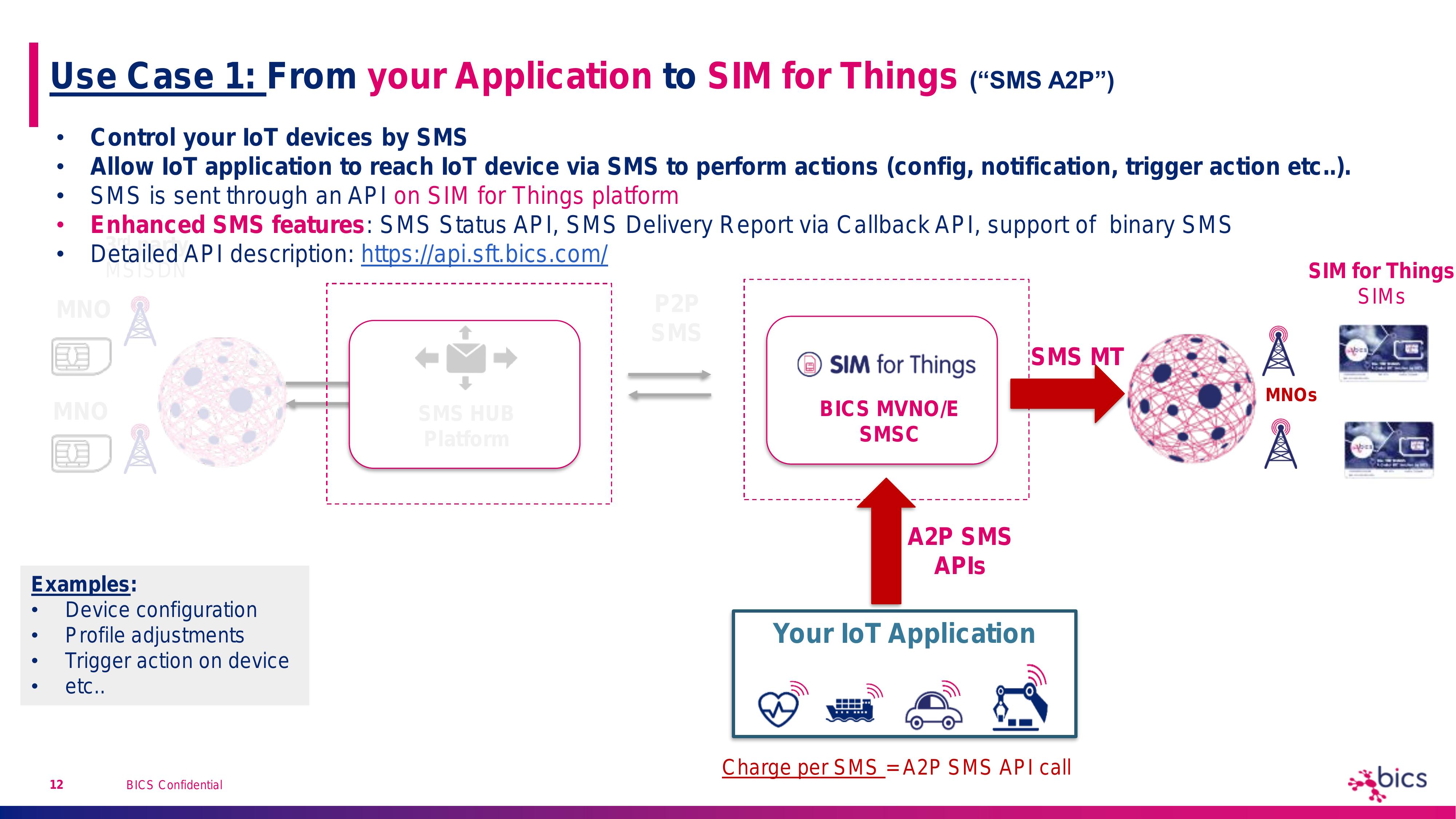 SMS use cases supported by SIM for Things
