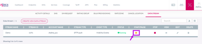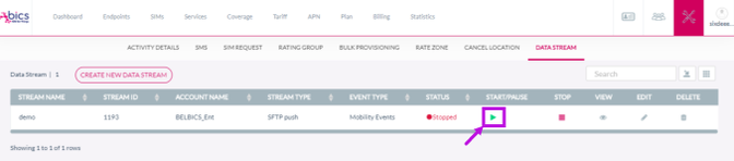 1. After Activating Data Stream from BICS in Enterprise level start button will be enabled