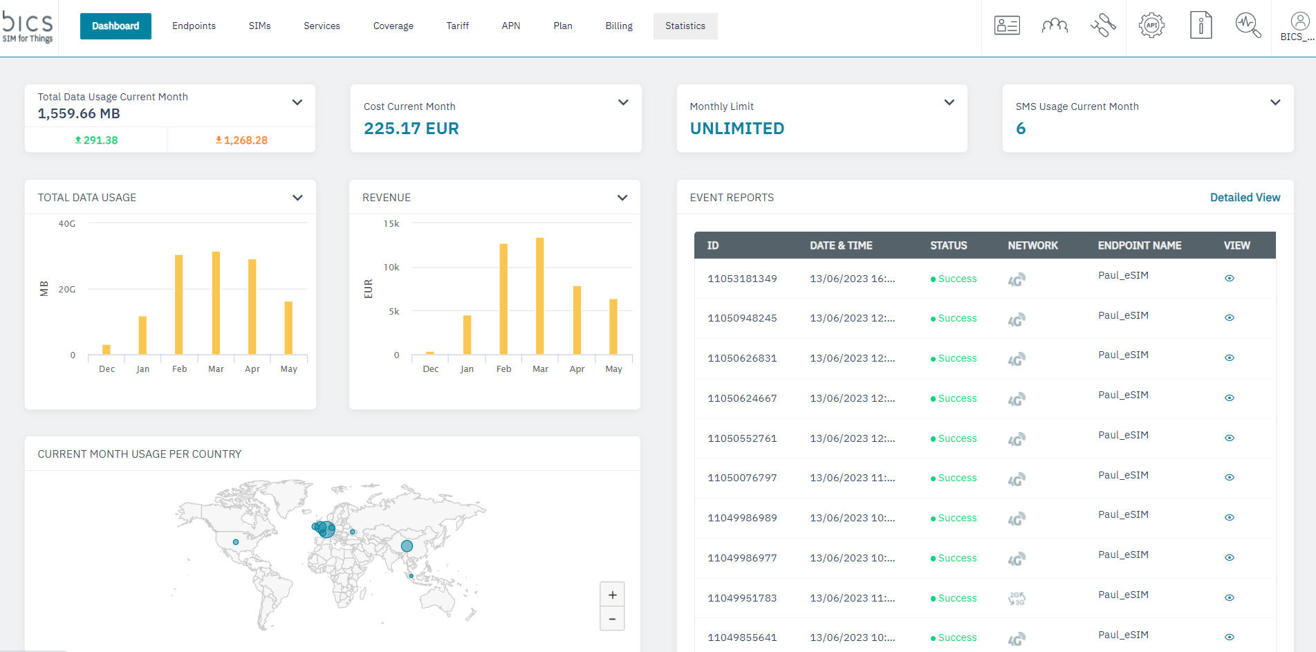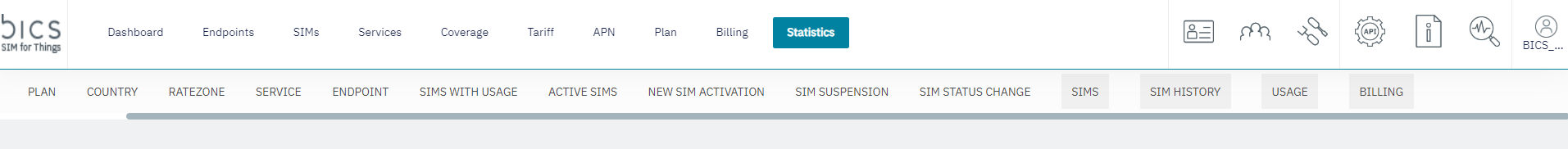 Click Statistics to view the SIM, Billing and Usage reports. Refer to the following screen.