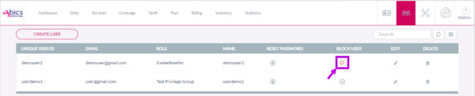 displayed against the user to unblock the user. Refer to the following screen.