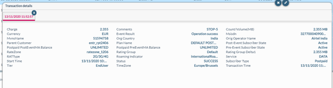 Network type | Indicates the network type used for transaction. For example, 2G, 3G, 4G, or NBIOT |
