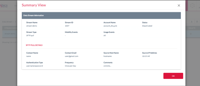 The following Data Stream details are displayed on the summary screen of SFTP Pull data stream.