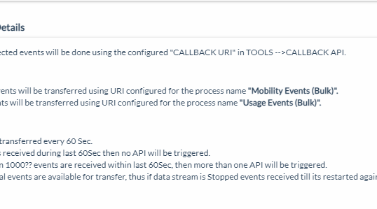 7. Summary View of Callback API(Bulk) Data Stream and selected Usage and Mobility Events
