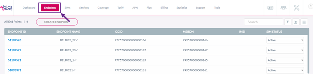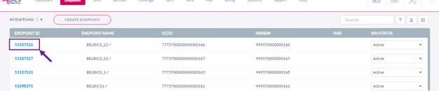 1. On the top menu, click Endpoints to view the endpoint details. Refer to the following screen.