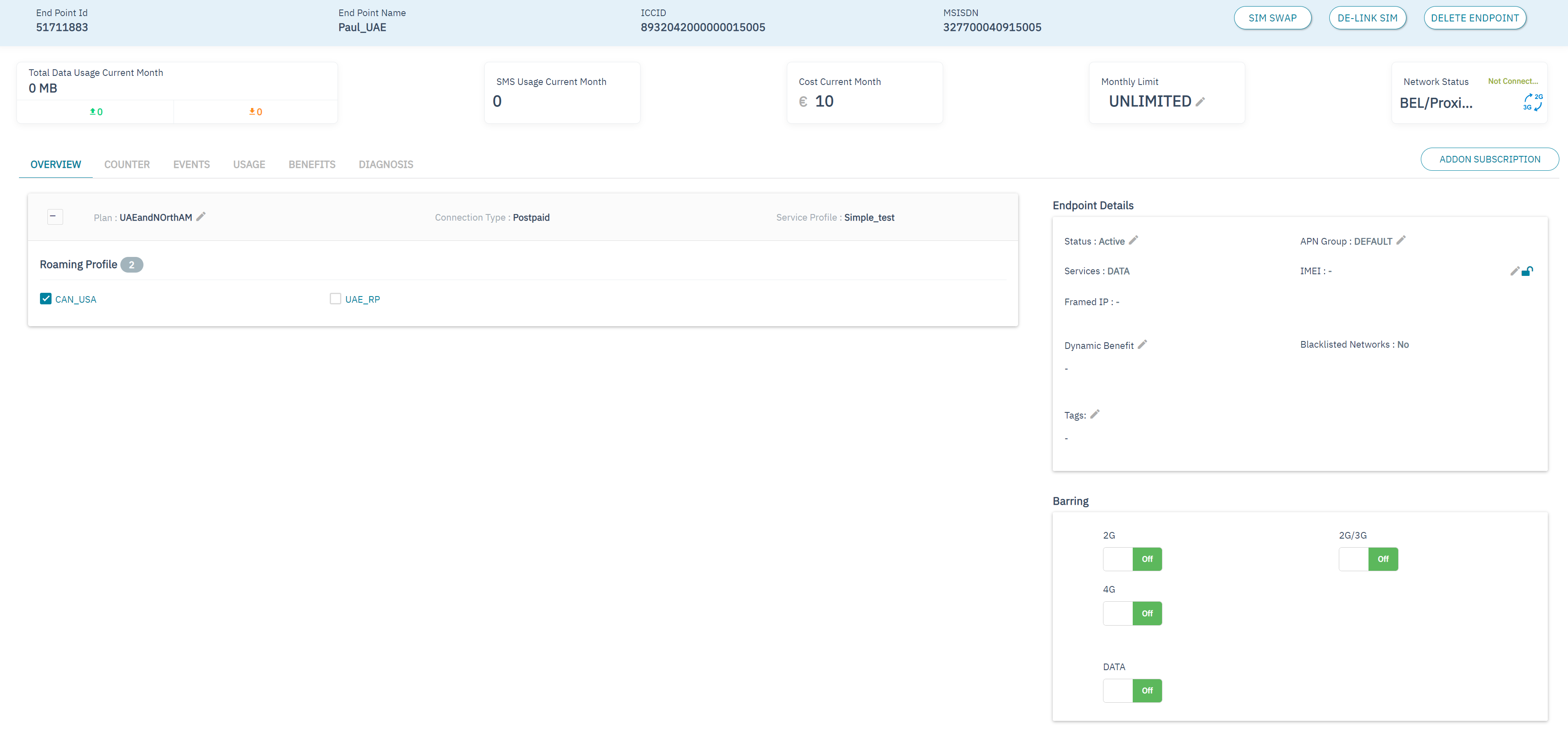 Plan | Indicates the current base plan of the endpoint. to modify the plan Note: Blacklisting Operator: On changing plan, if blacklisted networks are present for that particular endpoint, then those networks will be removed from the blacklist in both 6D and HSS platform. User has to manually blacklist the networks if needed.